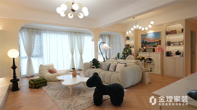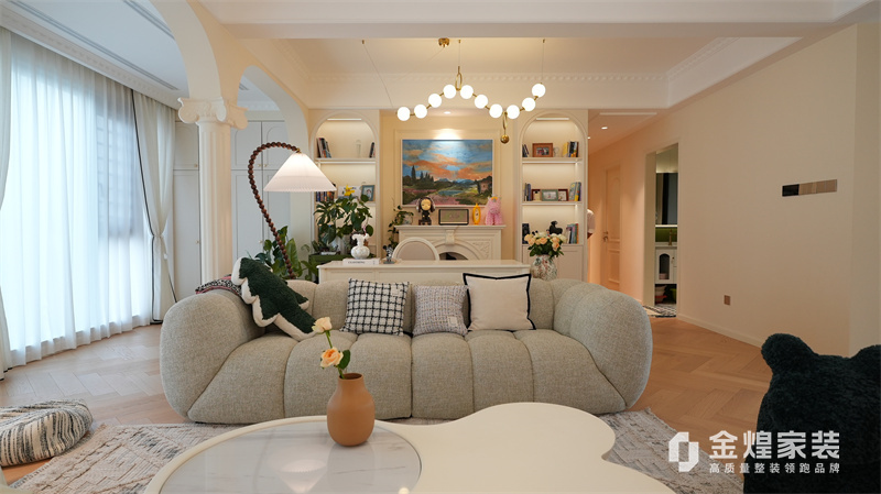 該案例整體色調(diào)柔和淡雅,家具造型簡約,線條流暢,同時(shí)融入了一些法式元素,如精致的吊燈、優(yōu)雅的拱形門洞和浪漫的裝飾細(xì)節(jié),既保留了法式風(fēng)格的浪漫與優(yōu)雅,又兼具現(xiàn)代簡約的簡潔與實(shí)用。