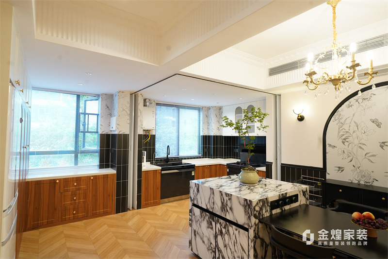 從客廳的裝飾細節可以看出,如帶有精致雕花的天花板、華麗的吊燈、優雅的家具線條以及整體柔和的色調,都透露出法式風格的浪漫與典雅。