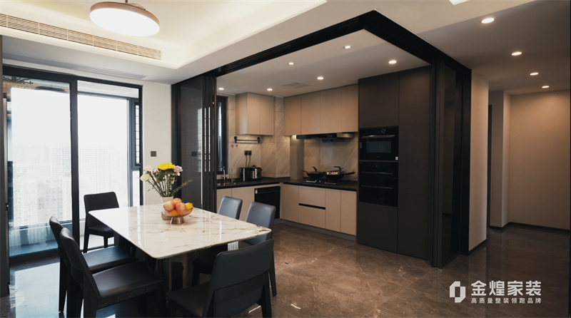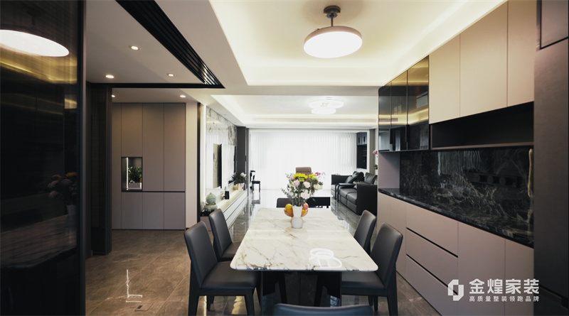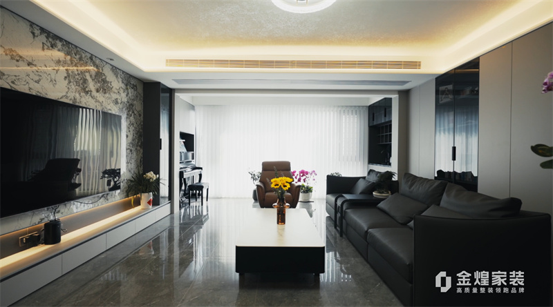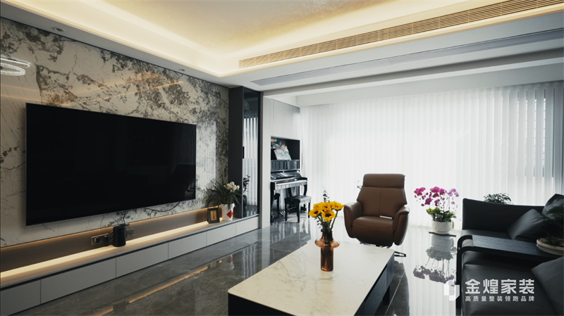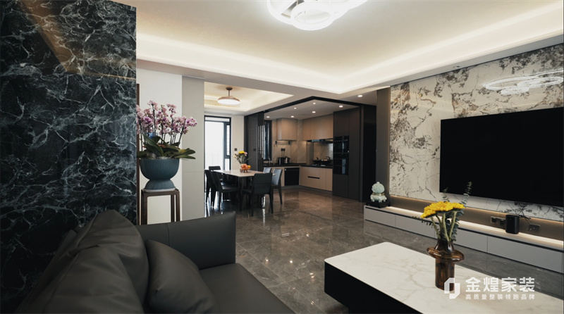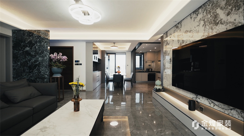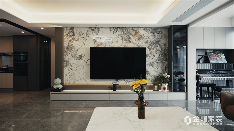 電視背景墻的大理石紋理、簡潔的家具線條以及精心布置的燈光設(shè)計(jì),都體現(xiàn)了現(xiàn)代輕奢風(fēng)格的特點(diǎn)。同時(shí),通過添加一些鮮花和裝飾品,增加了空間的溫馨感和生活氣息。