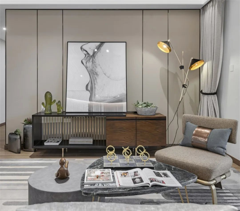 整個空間以淡雅色調為主,創造安靜舒適的氛圍。淺色木飾面與低調的色彩搭配,突顯了空間的奢華感,展現出貴氣的同時又不失優雅。精致的軟裝飾品與流暢的線條家具相映襯,彰顯端莊典雅的氣質。